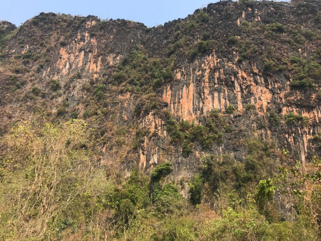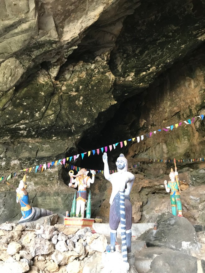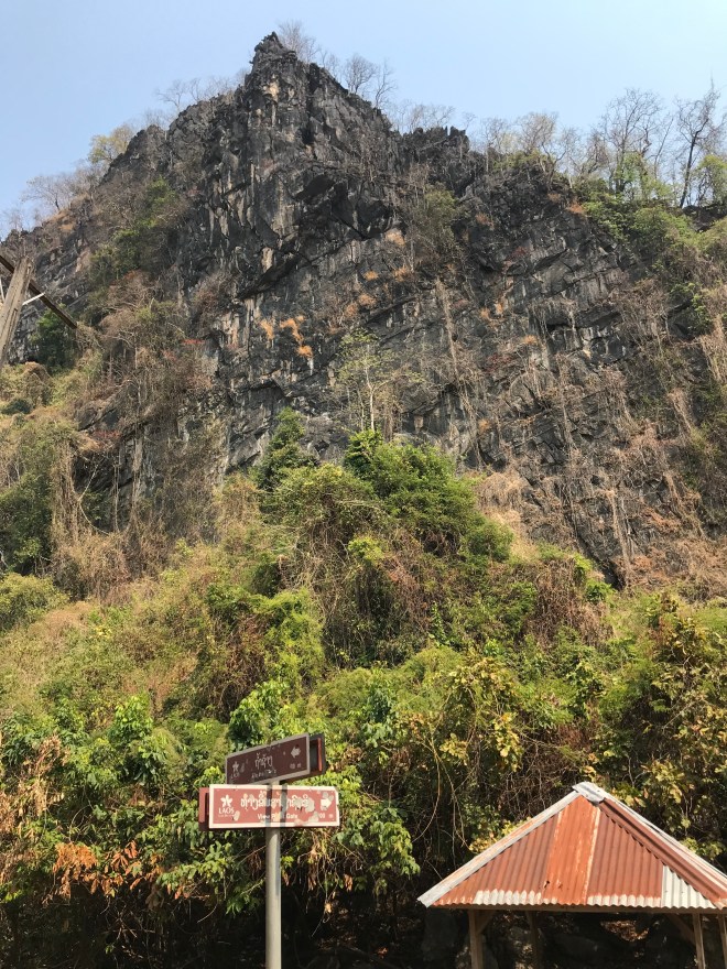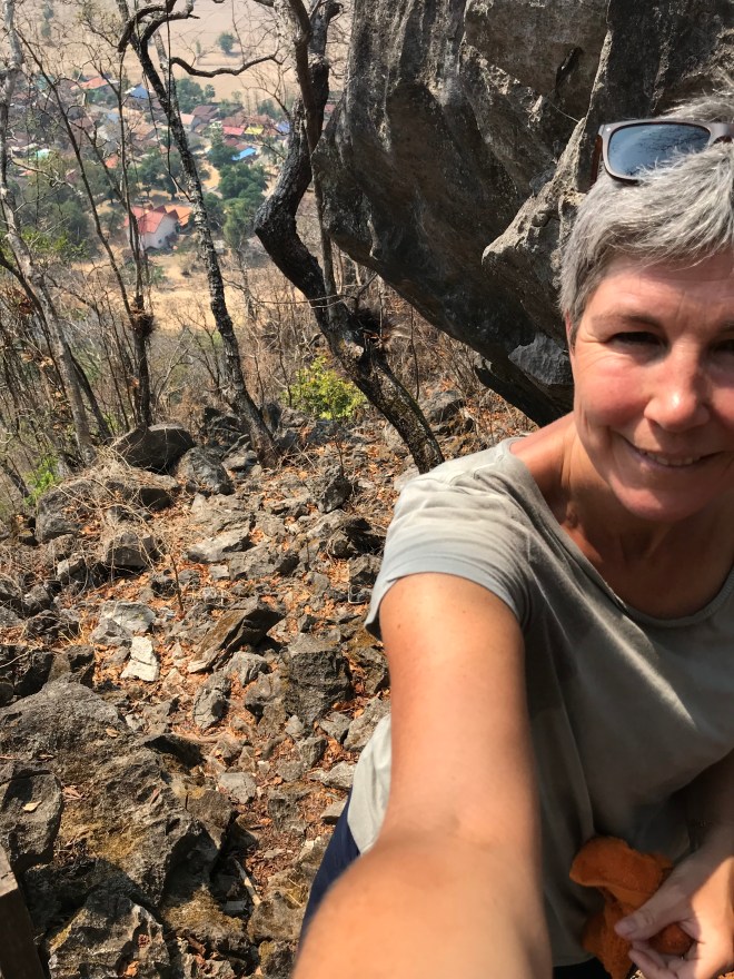 Je finis par trouver la première grotte, Éléphant Cave, là, il y a aussi la possibilité de grimper un rocher pour voir un beau panorama. Une heure de montée, 1/4 chemin caillouteux, 1/2 escalade, 1/4 escaliers de meunier super raides avec des grandes tiges de bambous qui servent de rampes, mais c’est vrai que la vue en haut est jolie, 1/2 h de descente, pressée d’aller boire un bon litre de flotte que j’ai perdu dans mon aller-retour sous 30°.